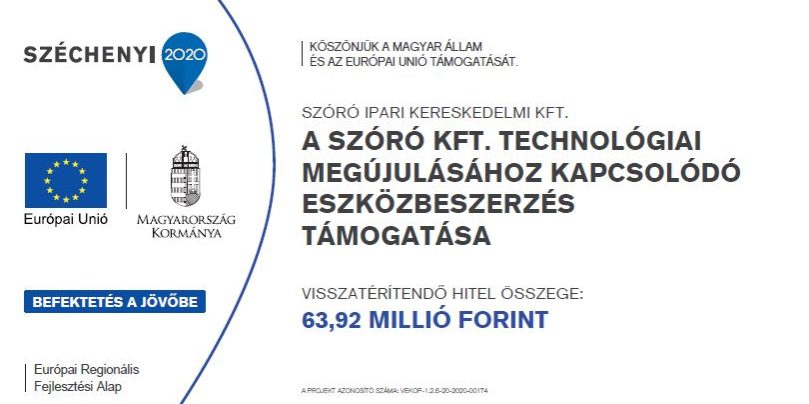 A kedvezményezett neve: SZÓRÓ Ipari Kereskedelmi Kft. A projekt címe: A Szóró Kft. technológiai megújulásához kapcsolódó eszközbeszerzés támogatása A szerződött támogatás összege: 63 922 326 Ft A támogatás mértéke (%-ban): 70 % A projekt tartalmának bemutatása: A projekt keretében 3 db eszköz beszerzése valósul meg. Az egyik beszerzendő eszköz a BROTHER R650X2 függőleges, palettaváltós CNC megmunkáló…