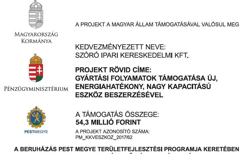 Gyártási folyamatok támogatása új, energiahatékony, nagy kapacitású eszköz beszerzésével A sülysápi SZÓRÓ Kft. számos partnere számára gyárt fémmegmunkálásra speciális gépalkatrészt.…